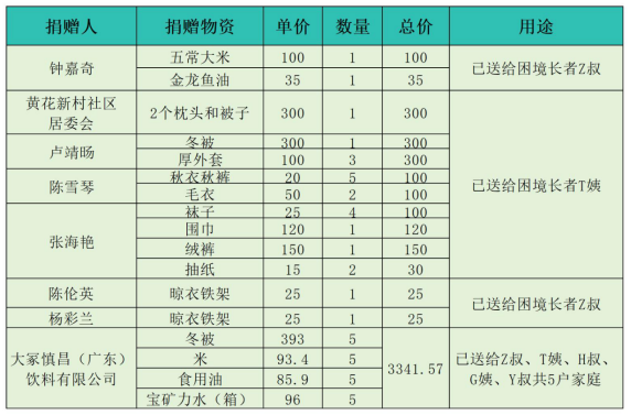 社工、志愿者与企业爱心人士带上过冬棉被和米、油等生活必需用品来到困境长者们的家中。在为长者们送上暖心物资的同时,志愿者与企业爱心人士还细心询问长者们的生活起居和身体健康等情况,叮嘱其保重身体,以真情和实际行动拉近了与长者们的距离,给长者们带来了社区的关怀和温暖。