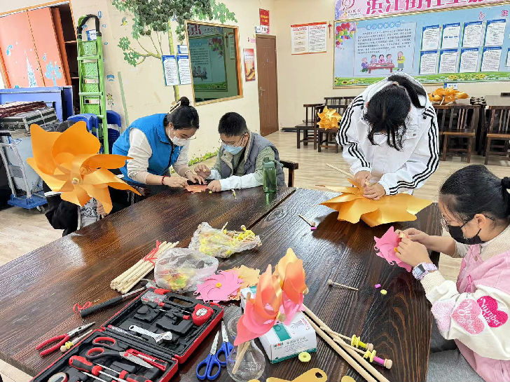 为契合新春氛围,本次小组选择风车作为义卖物品,在组员们完成手工风车的过程中,社工向组员介绍教授志愿者的相关知识,引导组员树立投身社区、参与志愿服务意向。在小组后期,社工带领组员将进行外展义卖服务实践,体验义卖志愿服务,筹集社区慈善基金,帮助社区困难人群。