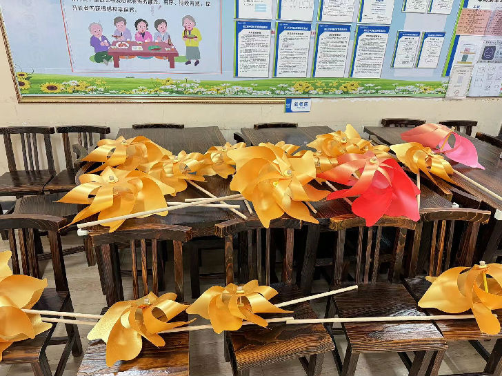 经过两节小组的积累,组员们完成了大、中、小三种型号的风车若干。