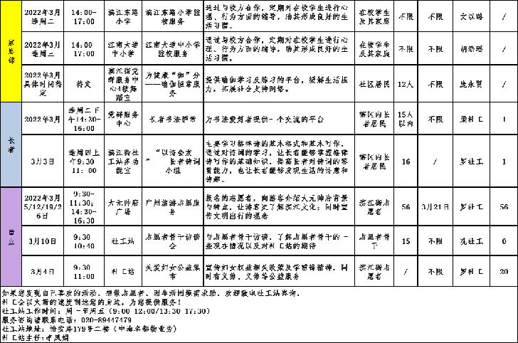 :【华乐街社工站】华乐社工站2022年3月份活动预告