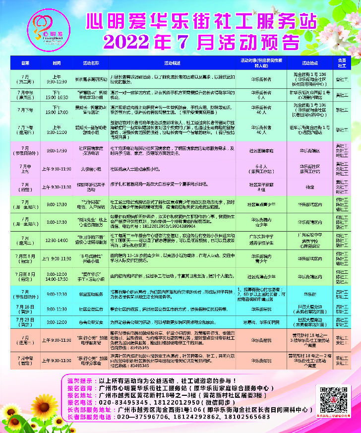 【华乐街社工站】2022年7月活动预告