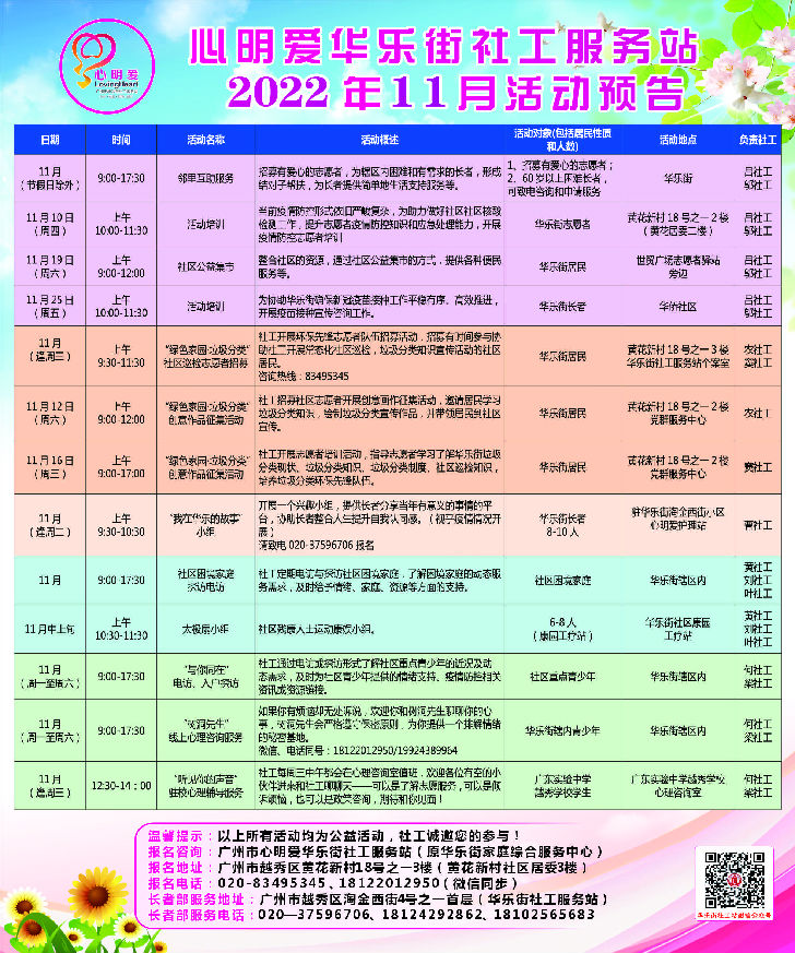 【华乐街社工站】华乐社工站2022年11月份活动预告