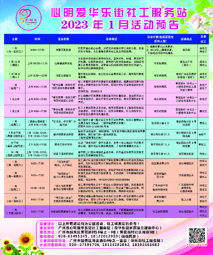【华乐街社工站】华乐社工站2023年1月份活动预告