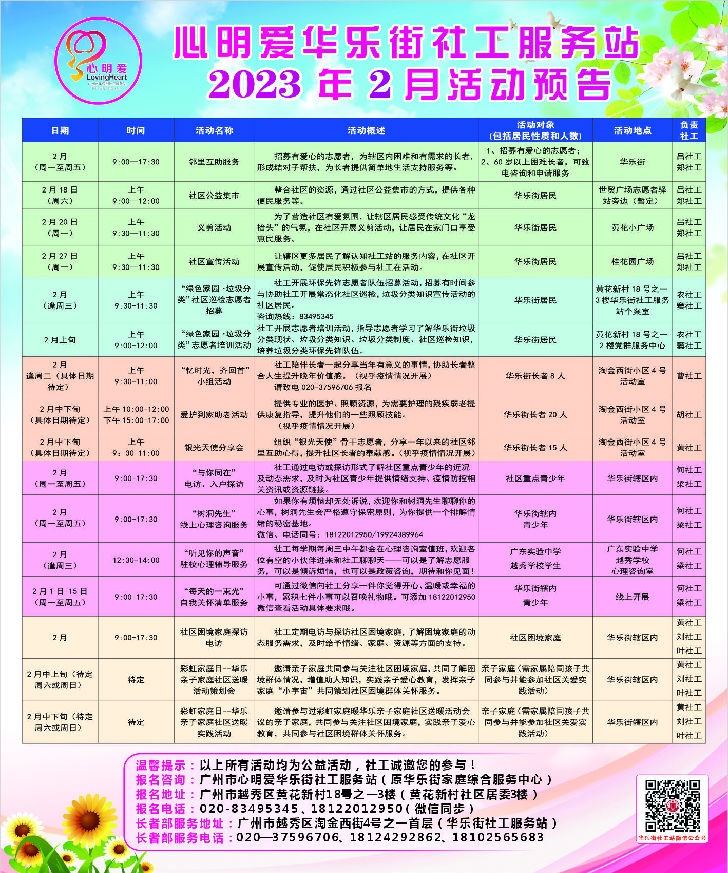 【华乐街社工站】华乐社工站2023年2月活动预告