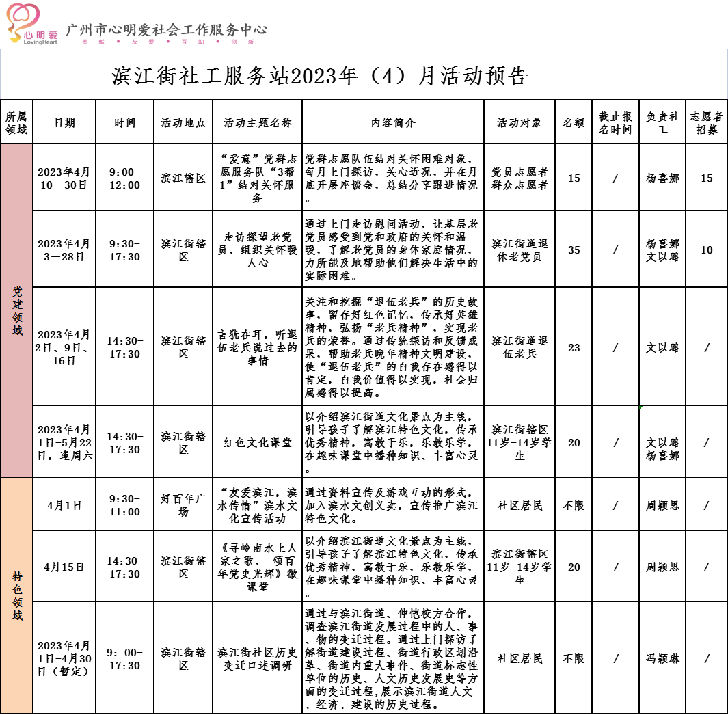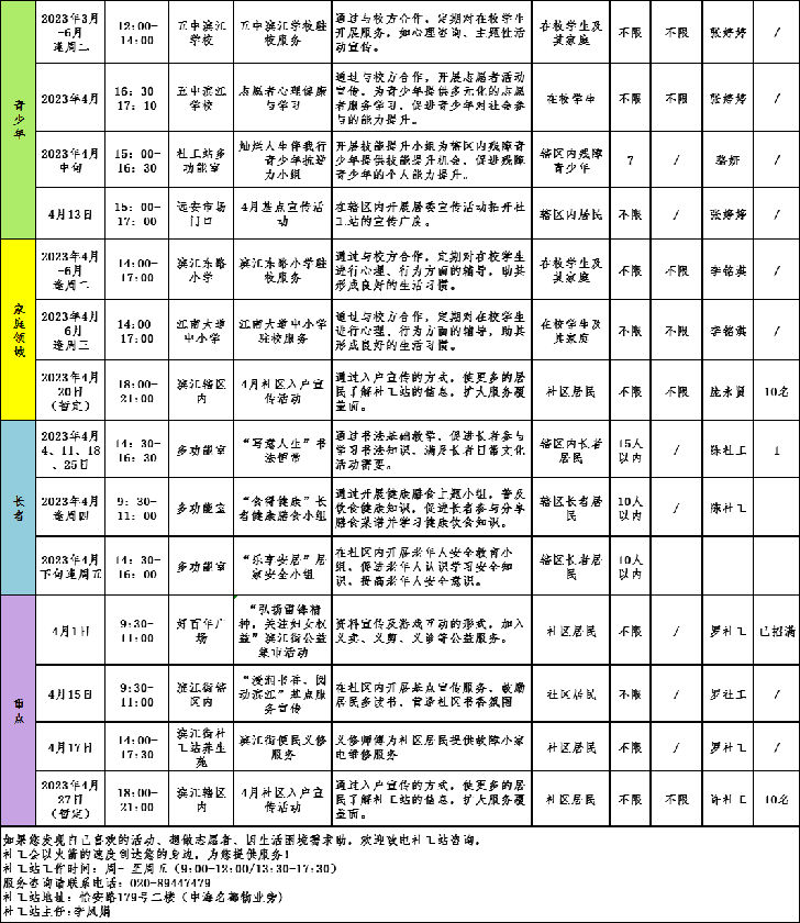 【滨江社工站】2023年(4)月活动预告