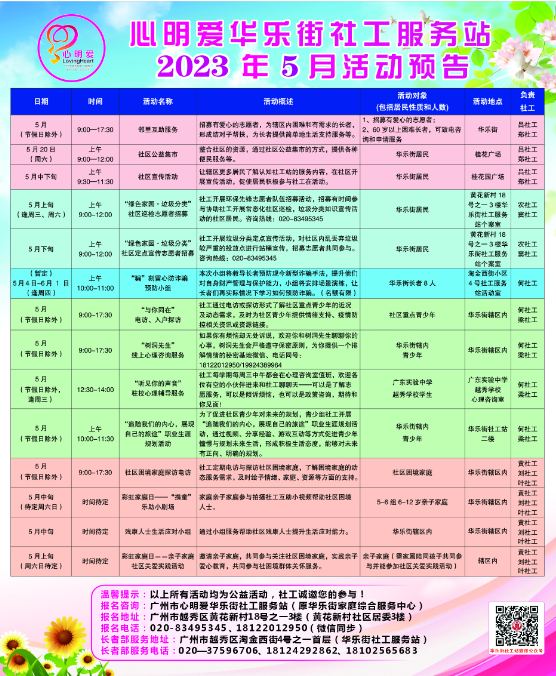 【华乐街社工站】华乐社工站2023年5月活动预告