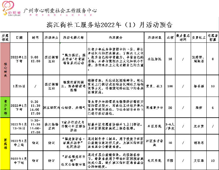 【滨江社工站】2022年(1)月活动预告