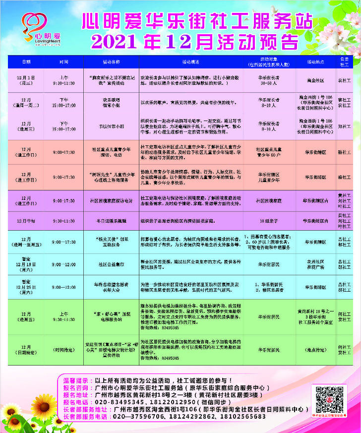 【心明爱华乐街社工站】心明爱华乐街社工站2021年12月活动预告